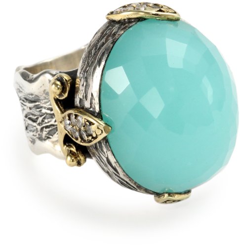 A mix of smooth blue hues and oxidized silver creates a vibrant, antique look inspired by artistic design from centuries past. This ring by Bora brings both unique Mediterranean style and cool color to your everyday wear. Handcrafted 925 oxidized sterling silver with bronze detailing Oval chalcedony accented with cubic zirconia Due to process of handcrafting jewelry, the stone may vary slightly in